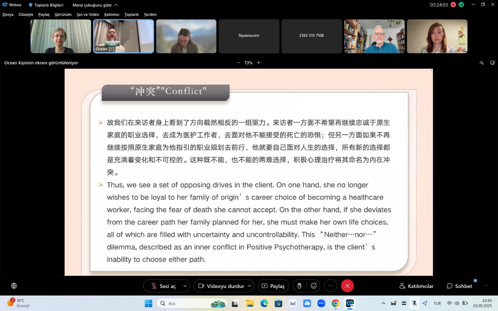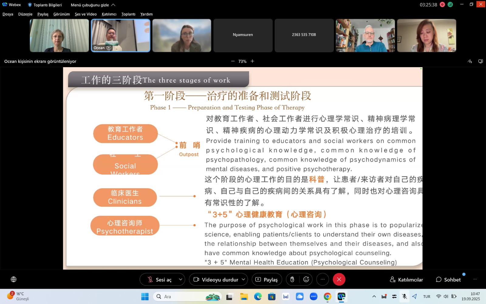 Webex üzerinden online olarak 19 Eylül 2025 tarihinde düzenlenen "Çin Konferansı - Doğu ve Batı Terapötik Yaklaşımları Bütünleştirmek" konulu konferansa katılım sağladık.